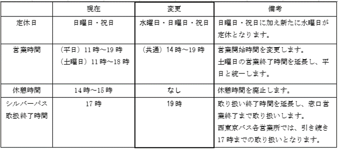 八王子駅北口案内所営業時間外での定期券のお求めは、西東京バス各営業所(9:30~19:00)